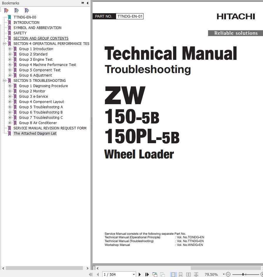 Hitachi ZW150-5B ZW150PL-5B Technical Manual TTNDG-EN-01