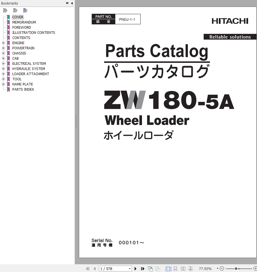 Hitachi ZW180-5A Parts Catalog PNDJ-1-1