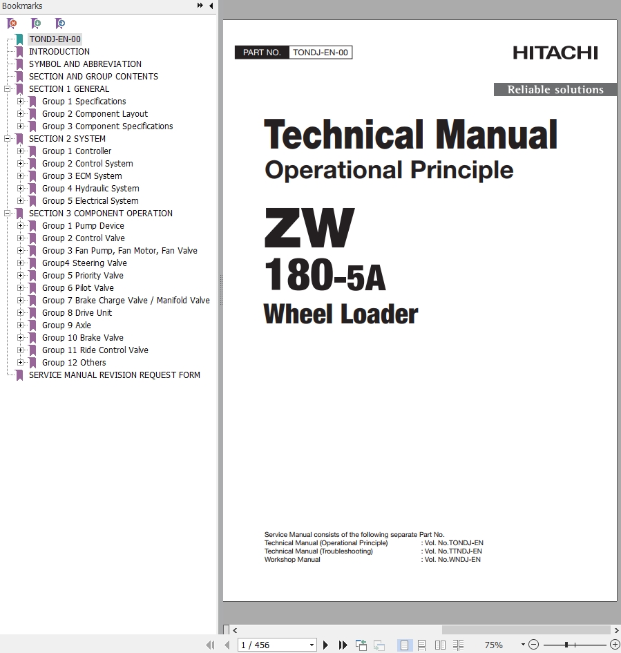 Hitachi ZW180-5A Technical Manual TONDJ-EN-00