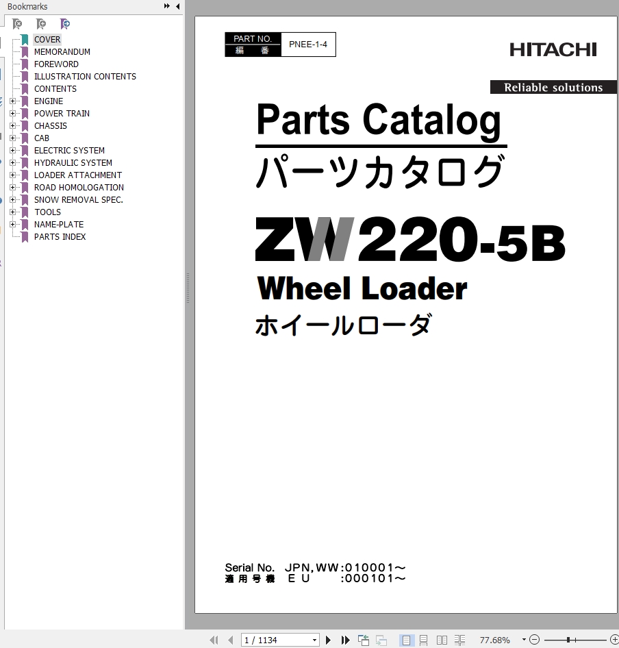 Hitachi ZW220-5B Parts Catalog PNEE-1-4