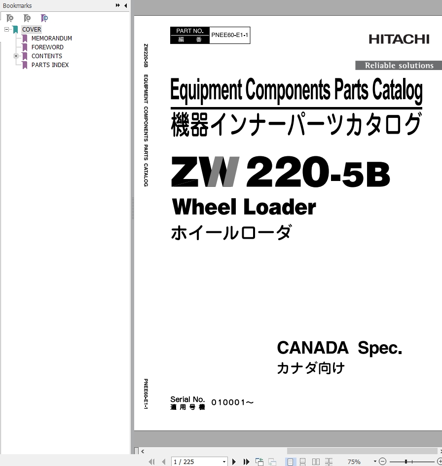 Hitachi ZW220-5B Parts Catalog PNEE60-E1-1