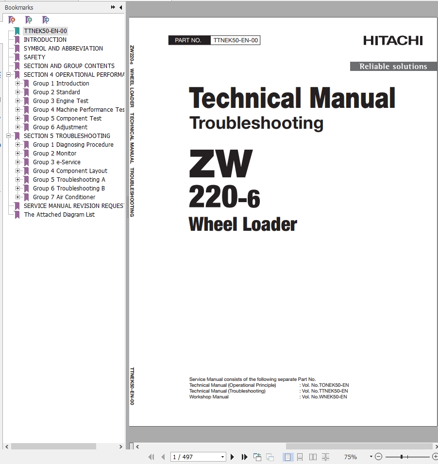 Hitachi ZW220-6 Technical Manual TTNEK50-EN-00