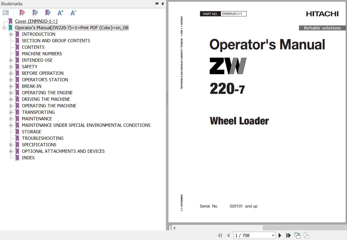 Hitachi ZW220-7 Operator's Manual ENMNUD-1-1