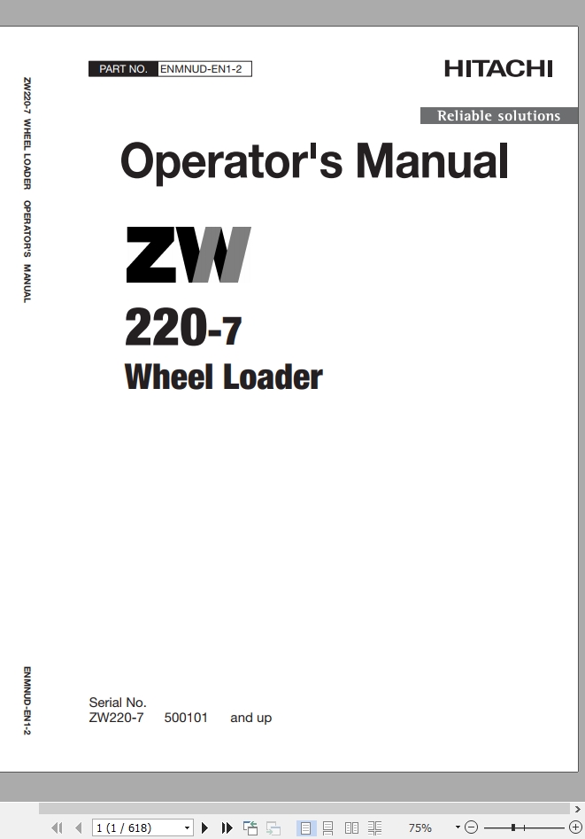 Hitachi ZW220-7 Operator's Manual ENMNUD-EN1-2