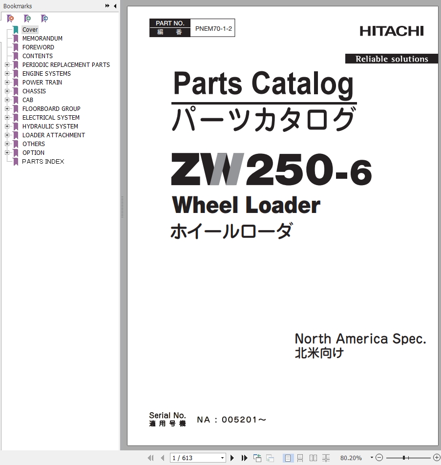 Hitachi ZW250-6 Parts Catalog PNEM70-1-2
