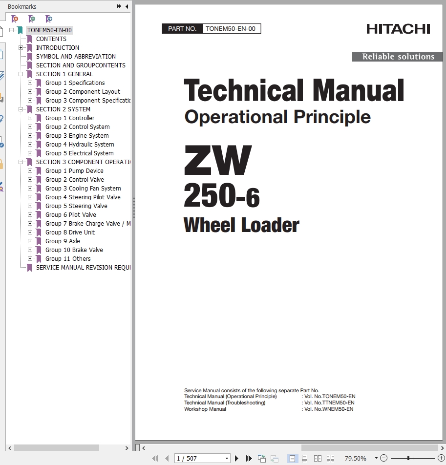 Hitachi ZW250-6 Technical Manual TONEM50-EN-00