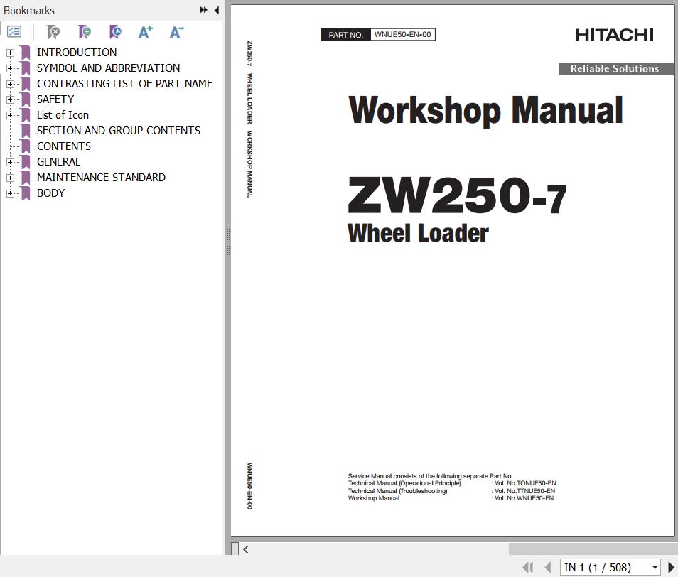Hitachi ZW250-7 Workshop Manual WNUE50-EN-00(1)(20231016) 508 Pages