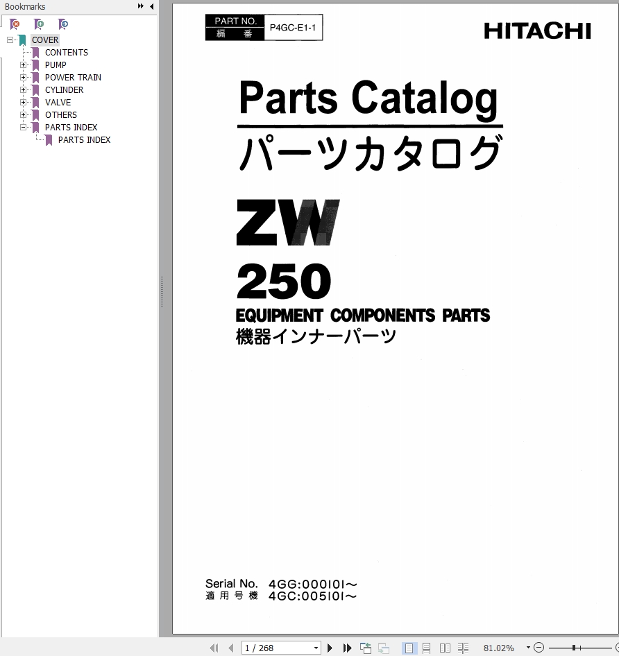 Hitachi ZW250 Parts Catalog P4GC-E1-1