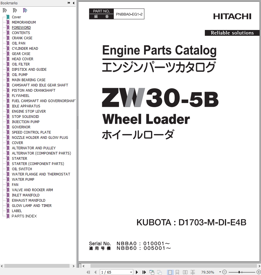 Hitachi ZW30-5B Engine Parts Catalog PNBBA0-EG1-2