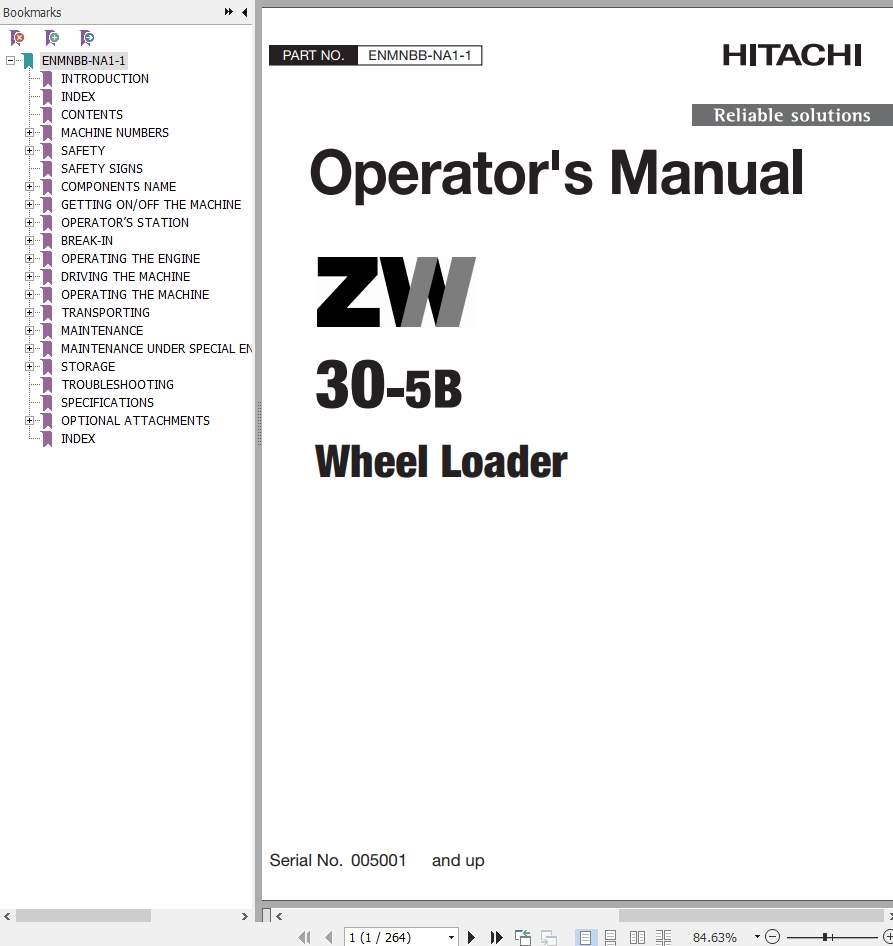 The Bookmarks of Hitachi ZW30-5B Wheel Loader Operator's Manual: