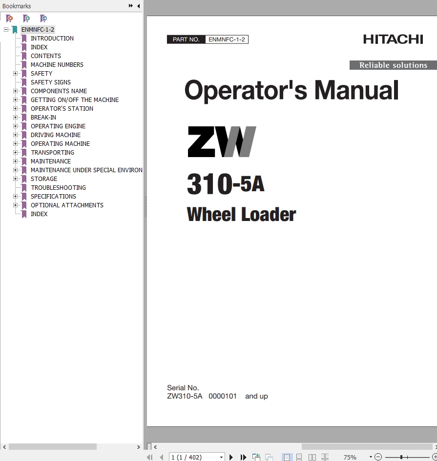 Hitachi ZW310-5A Operator's Manual ENMNFC-1-2