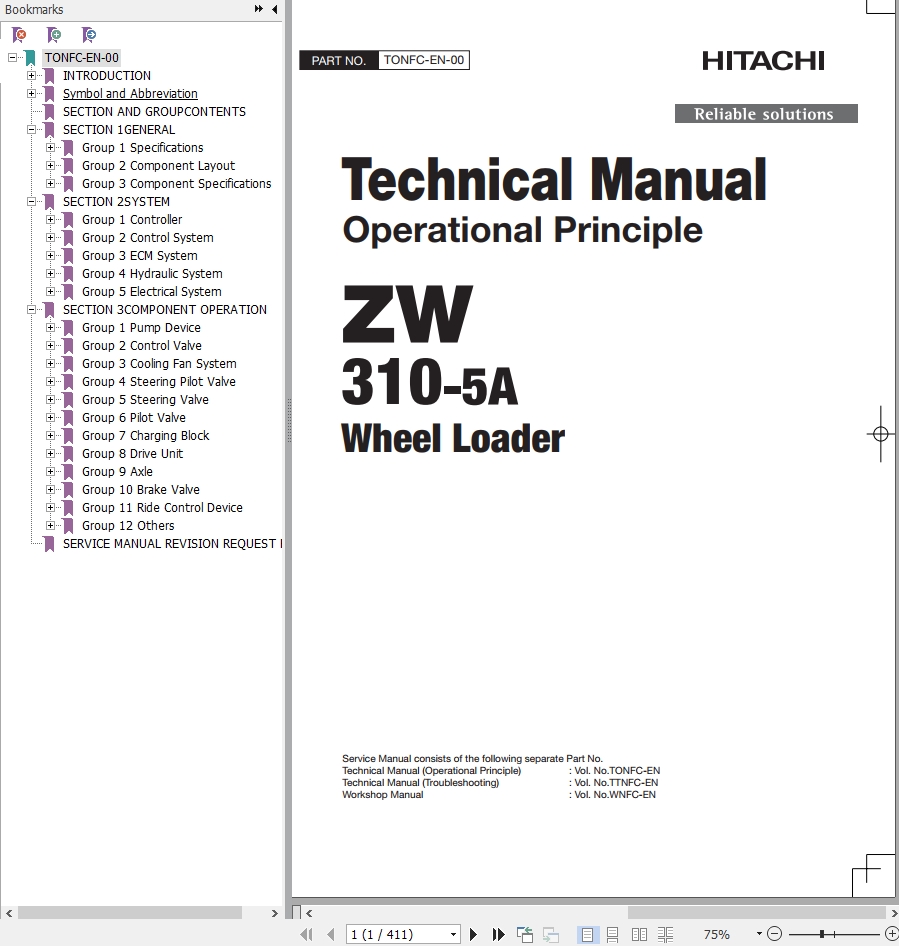 Hitachi ZW310-5A Technical Manual TONFC-EN-00