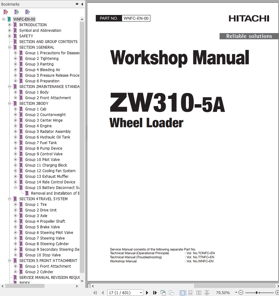 The Bookmarks of Hitachi ZW310-5A Wheel Loader Workshop Manual: