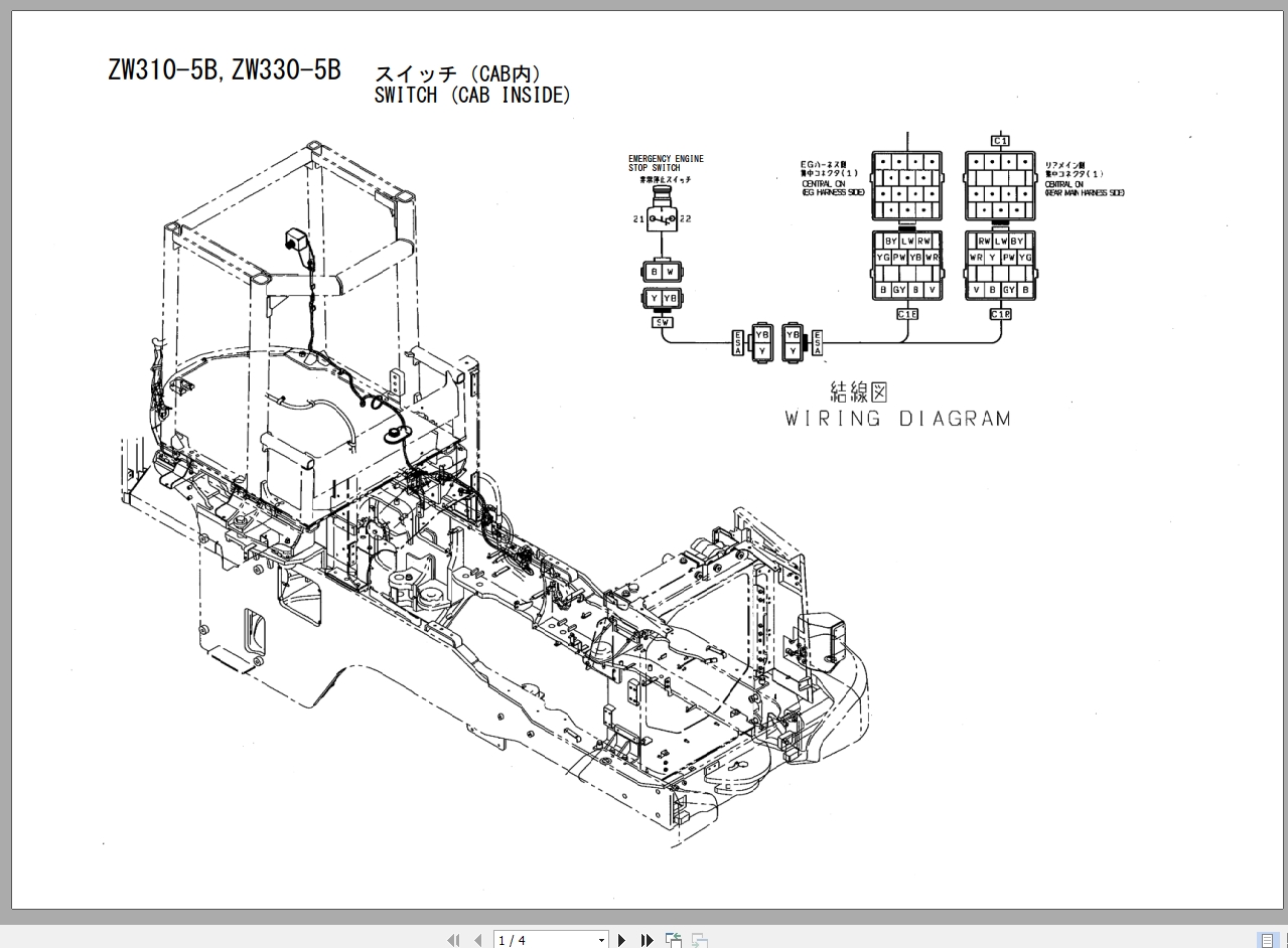 Hitachi ZW310-5B ZW330-5B Swwitch On Rear Chassis Wiring Diagram