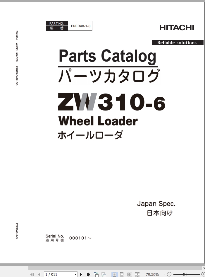 Hitachi ZW310-6 Parts Catalog PNFBA0-1-3
