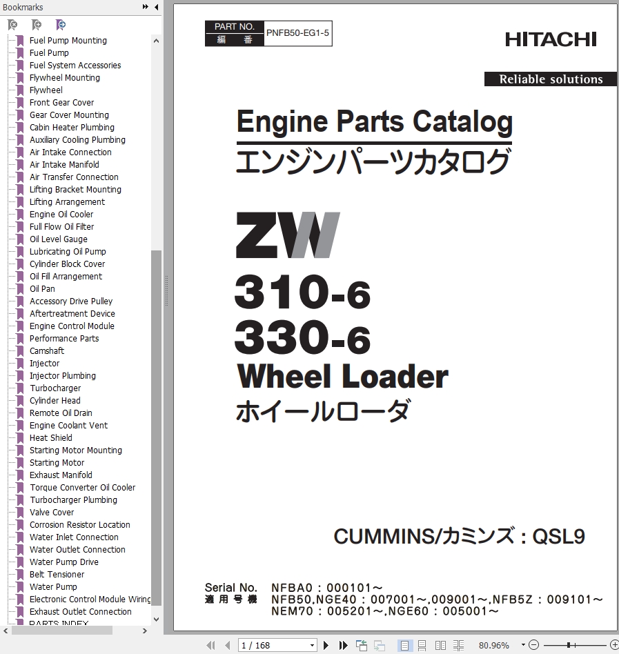 Hitachi ZW310-6 ZW330-6 Engine Parts Catalog PNFB50-EG1-5