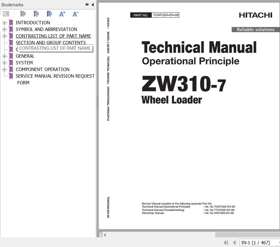Hitachi ZW310-7 Technical Manual Operational Principle TONFQ50-EN-00(20230421)
