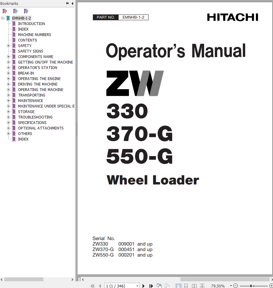 Hitachi ZW330 ZW550-G ZW370-G Operator's Manual EMNHB-1-2