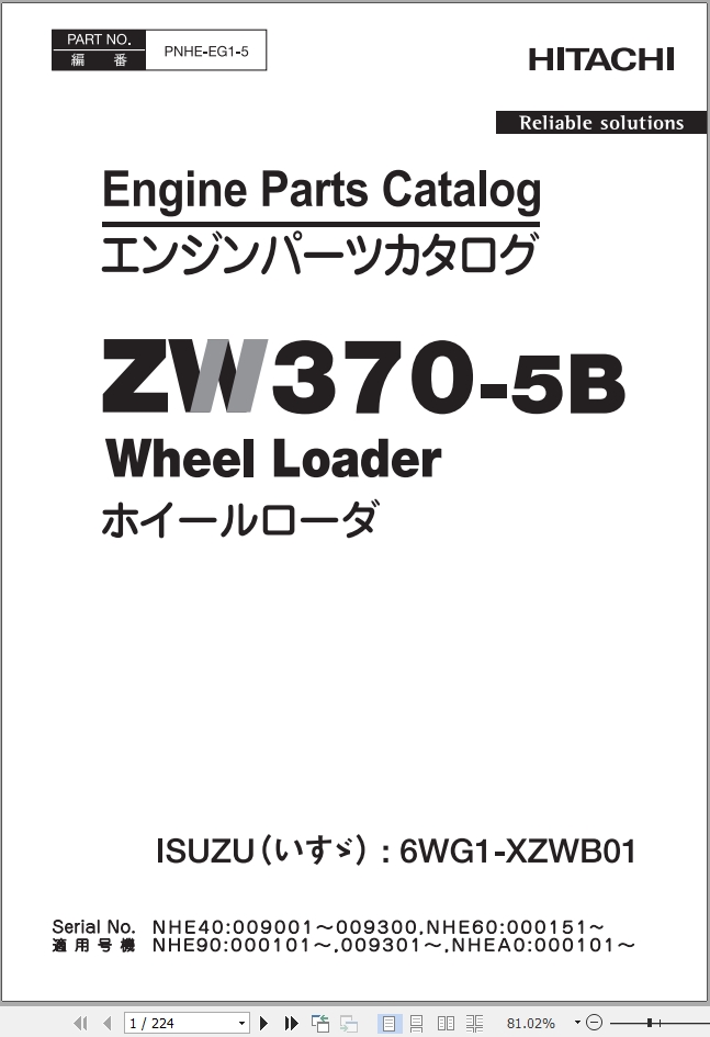 Hitachi ZW370-5B Engine Parts Catalog PNHE-EG1-5