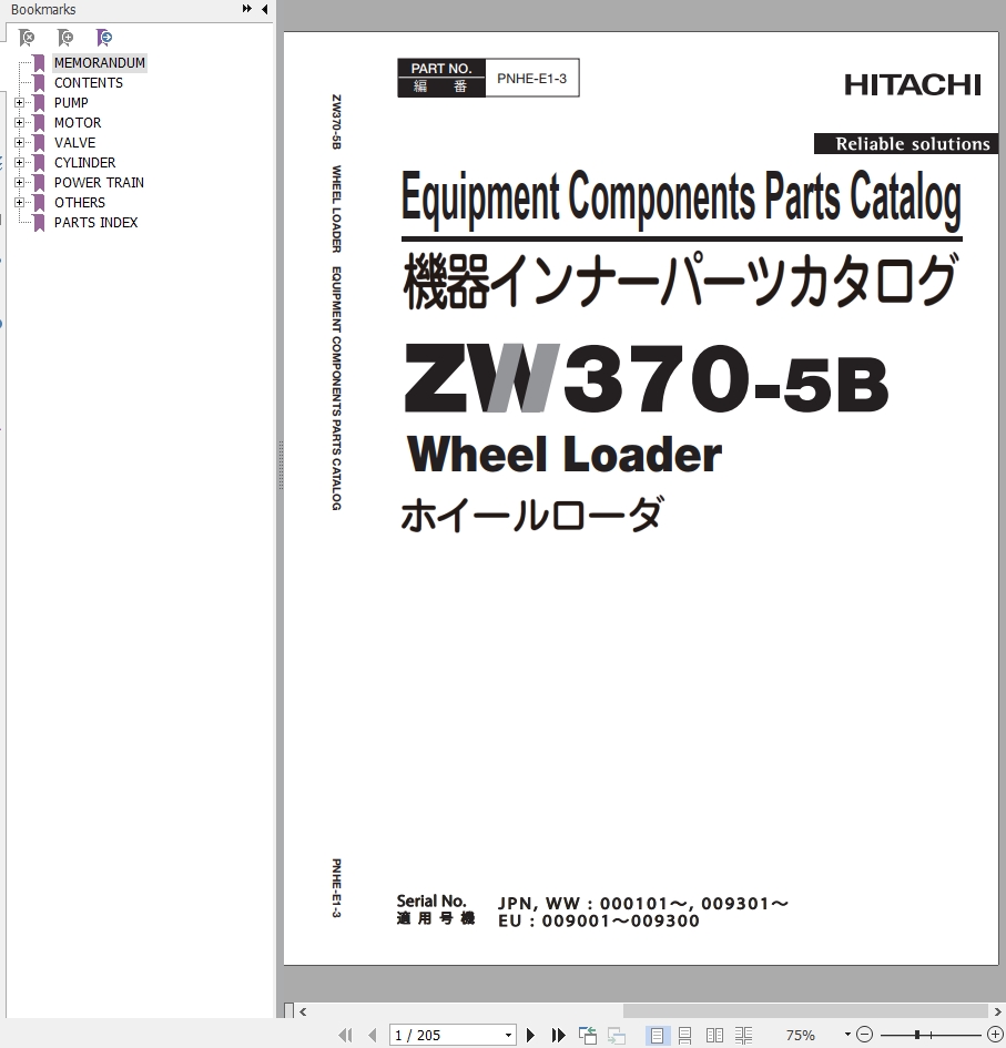 Hitachi ZW370-5B Parts Catalog PNHE-E1-3