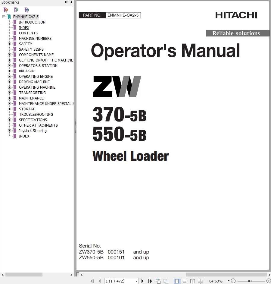 The Bookmarks of Hitachi ZW370-5B ZW550-5B Wheel Loader Operator's Manual: