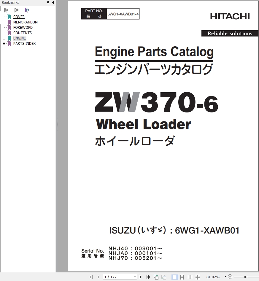 Hitachi ZW370-6 Engine Parts Catalog 6WG1-XAWB01-4