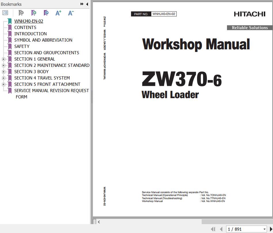 Hitachi ZW370-6 Workshop Manual WNHJ40-EN-02