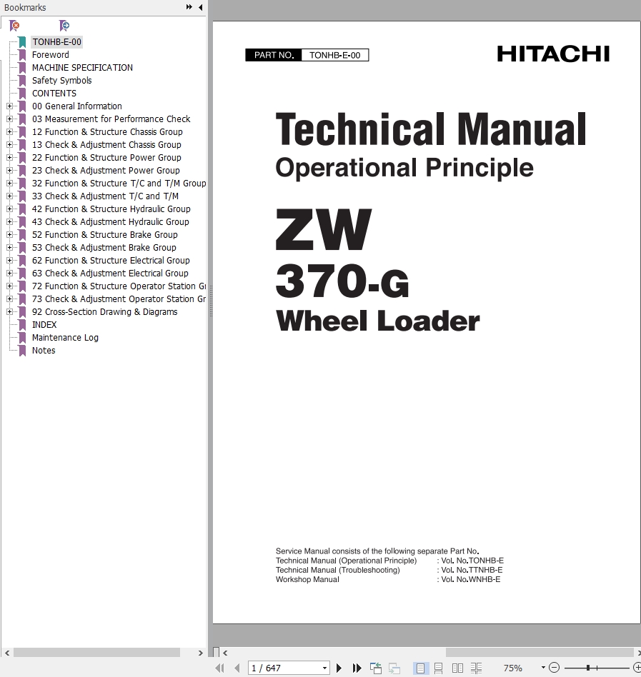 Hitachi ZW370-G Technical Manual TONHB-E-00