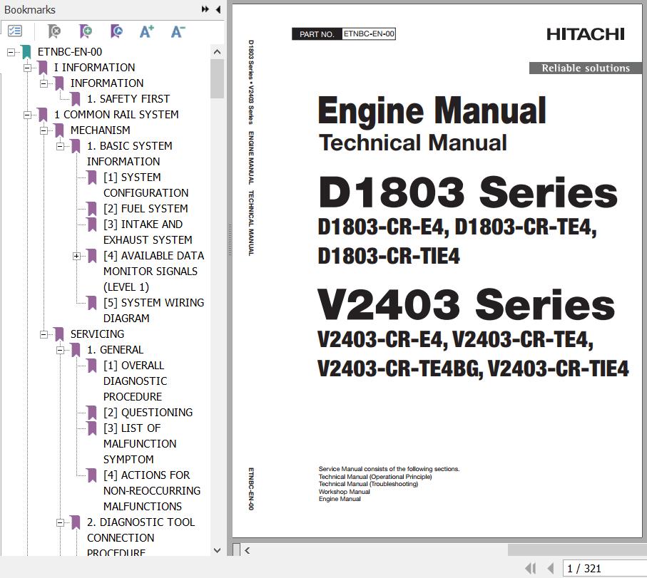 The Bookmarks of Hitachi ZW40-5B ZW50-5B Kubota D1803 Series V2403 Series Technical Manual: