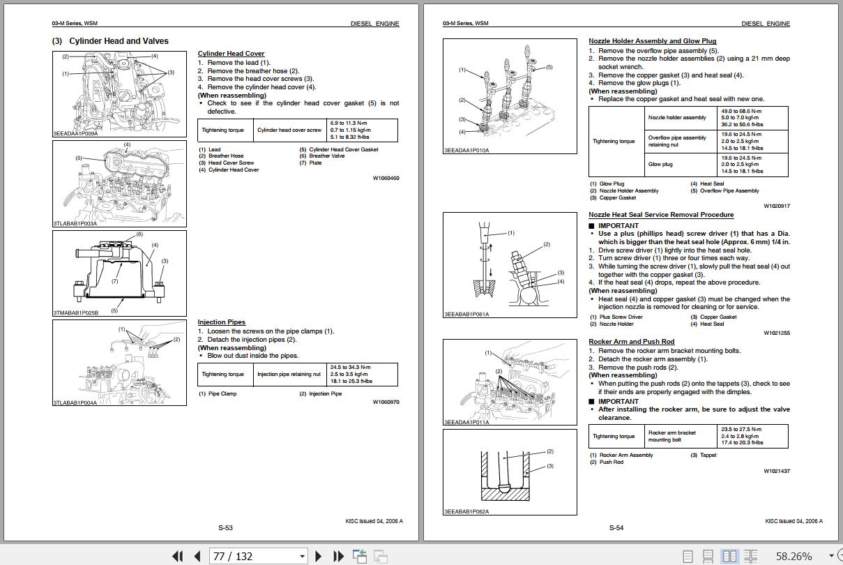Hitachi ZW40 ZW50 Kubota 03-M Series Engine Manual KM-03M-E-00