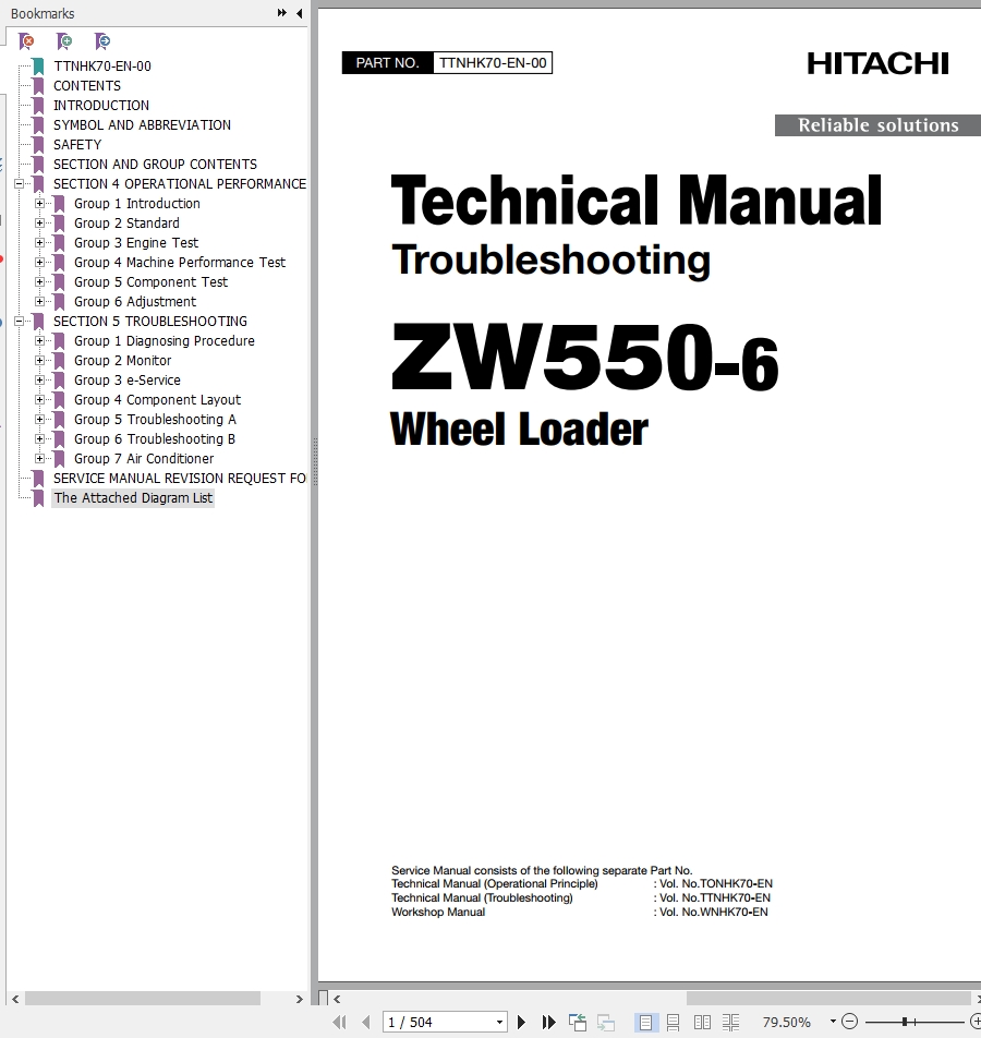 The Bookmarks of Hitachi ZW550-6 Wheel Loader Technical Manual(Troubleshooting):