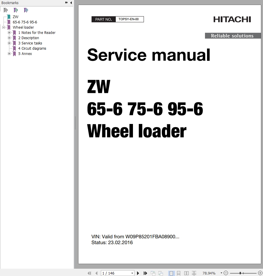 Hitachi ZW65-6 ZW75-6 ZW95-6 Service Manual