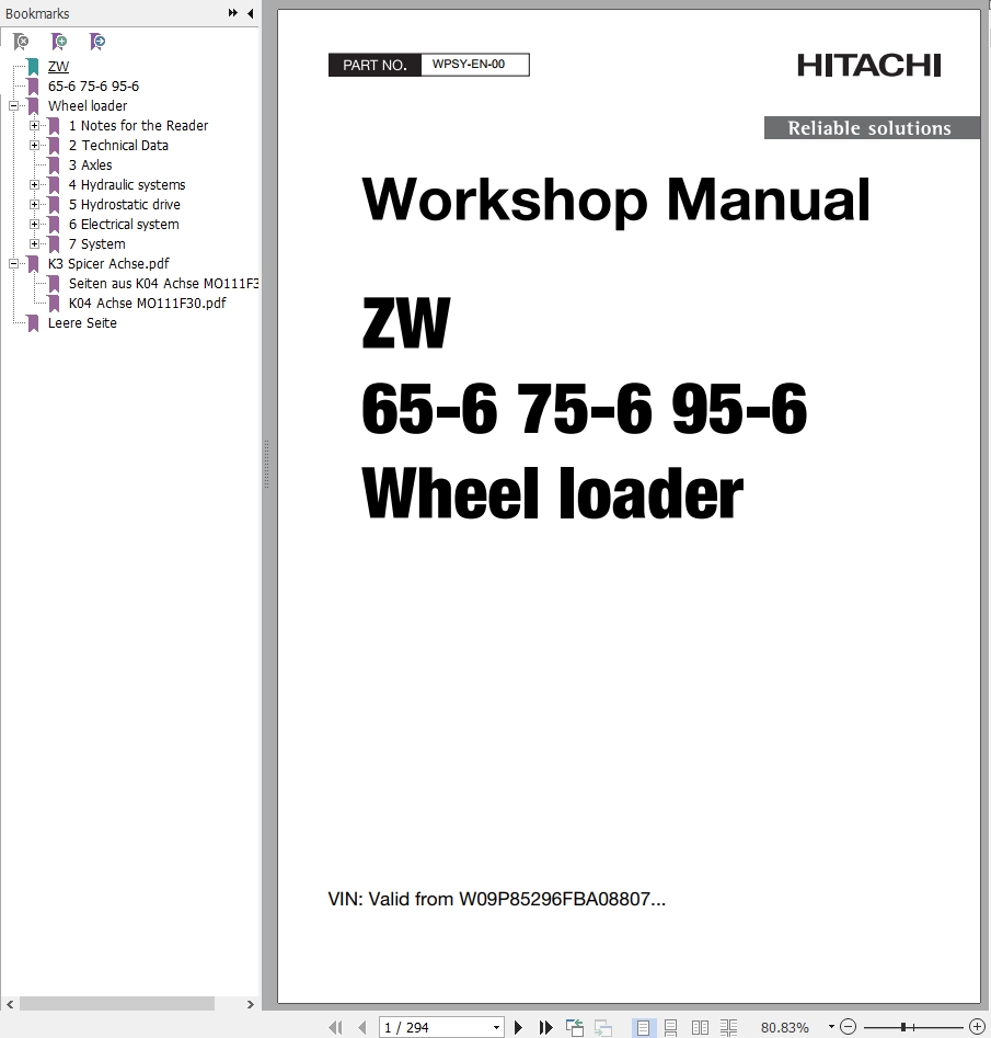 Hitachi ZW65-6 ZW75-6 ZW95-6 Workshop Manual WPSY-EN-00