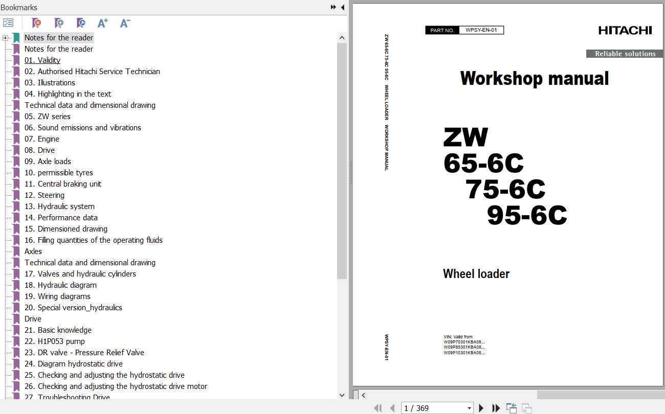 The Bookmarks of Hitachi ZW65-6C ZW75-6C ZW95-6C Workshop Manual: