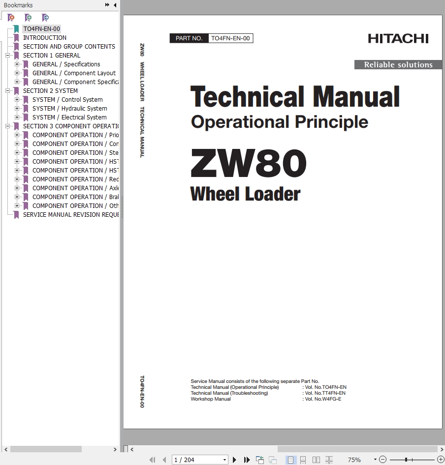 Hitachi ZW80 Technical Manual TO4FN-EN-00