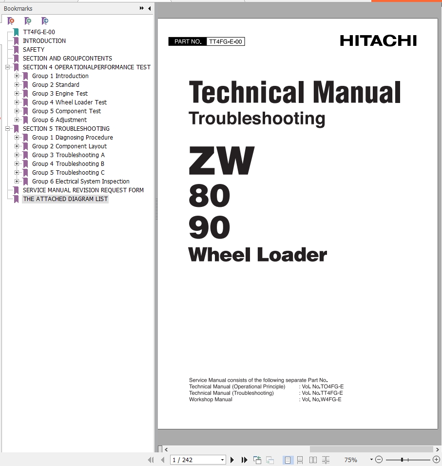 Hitachi ZW80 ZW90 Technical Manual Troubleshooting TT4FG-E-00 242 Pages