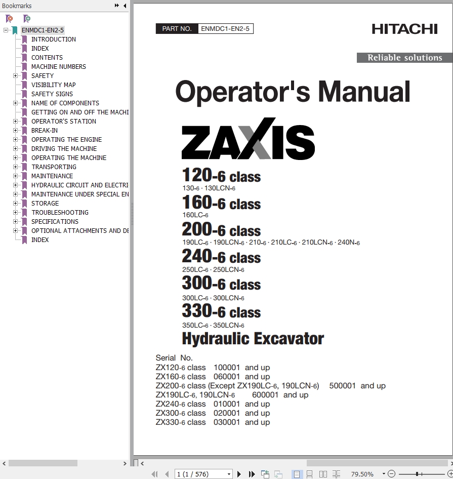 Hitachi ZX120-6 ZX330-6 Class Operator’s Manual ENMDC1-EN2-5
