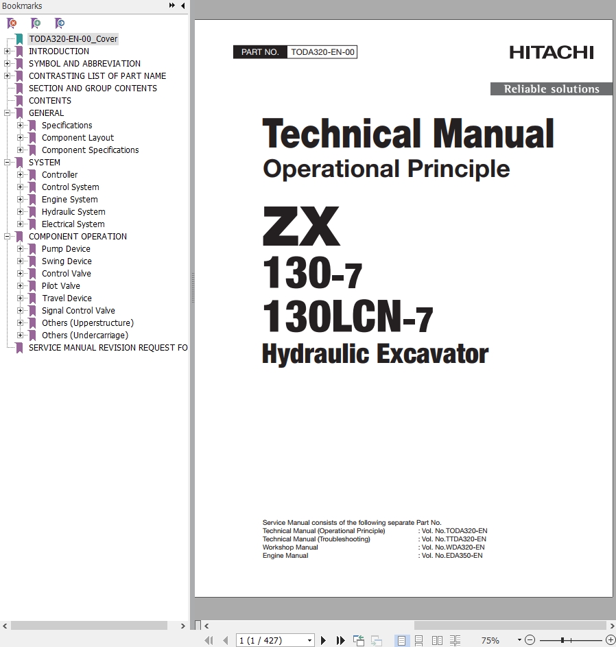 The Bookmarks of Hitachi ZX130-7 ZX130LCN-7 Hydraulic Excavator Technical Manual: