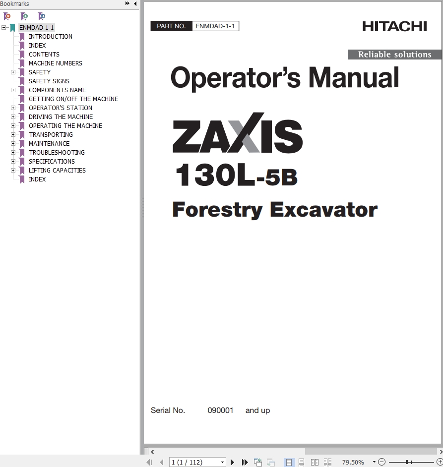 The Bookmarks of Hitachi ZX130L-5B Forestry Excavator Operator's Manual: