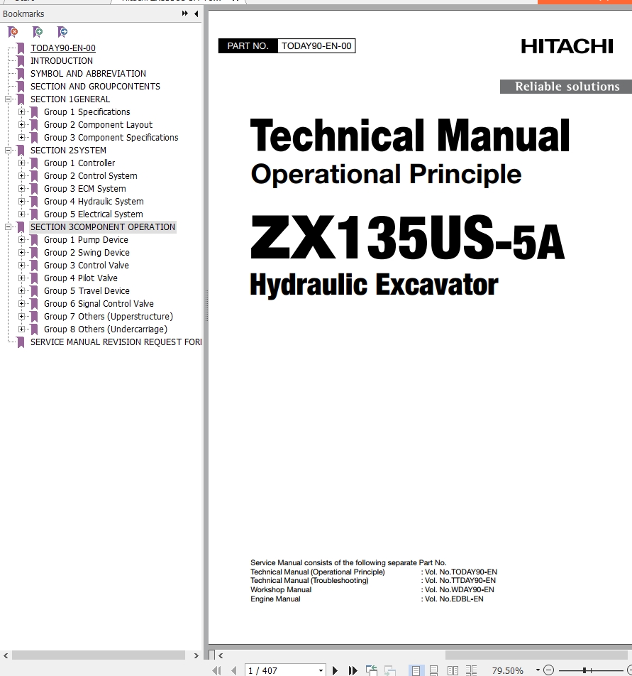 The Bookmarks of Hitachi ZX135US-5A Hydraulic Excavator Technical Manual: