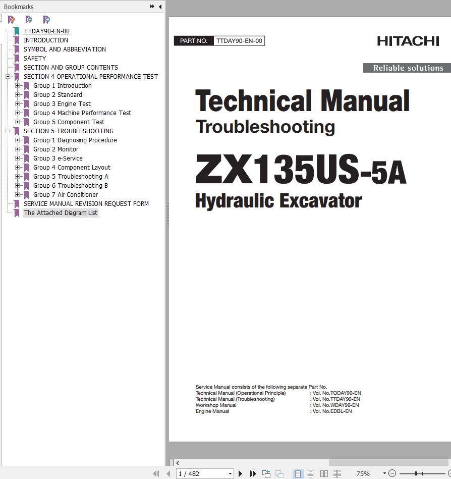 The Bookmarks of Hitachi ZX135US-5A Hydraulic Excavator Technical Manual(Troubleshooting):
