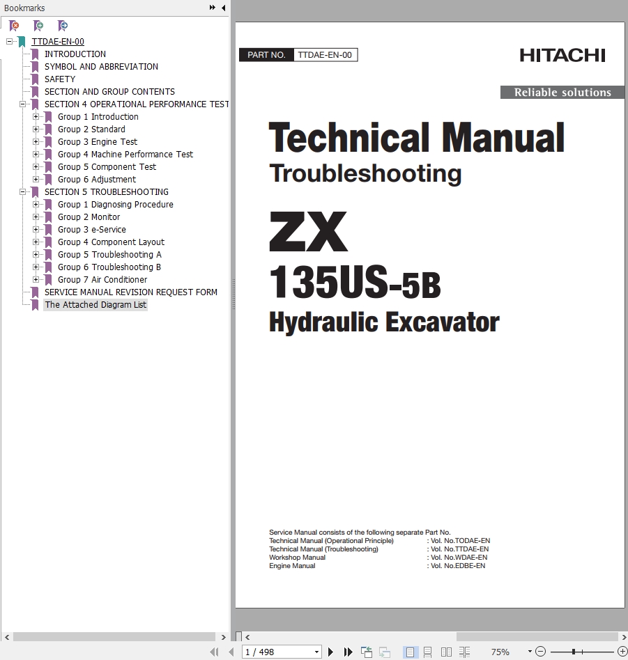 The Bookmarks of Hitachi ZX135US-5B Hydraulic Excavator Technical Manual(Troubleshooting):