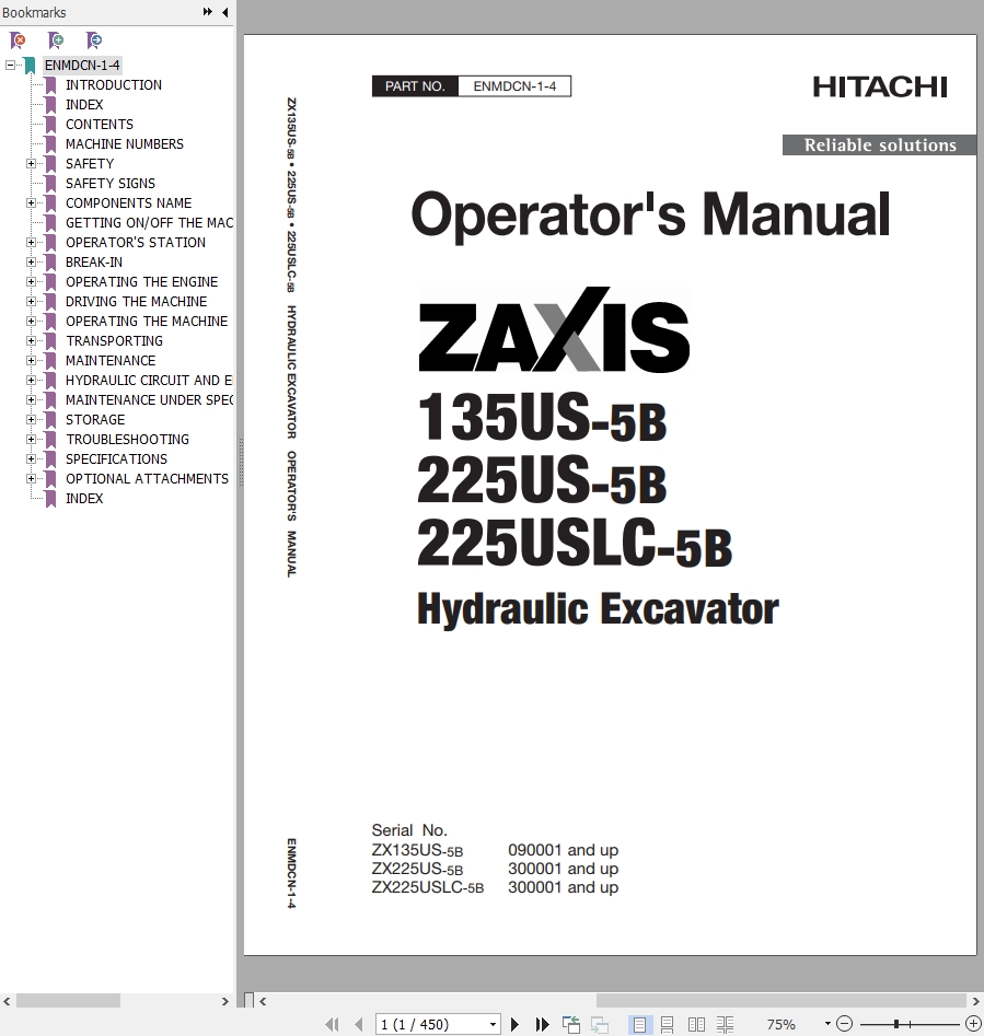 Hitachi ZX135US-5B ZX225US-5B ZX225USLC-5B Operator's Manual ENMDCN-1-4