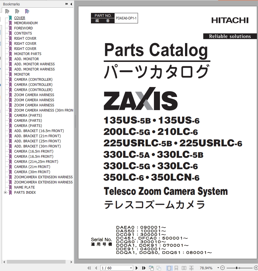 Hitachi ZX135US-5B ZX350LCN-6 Parts Catalog PDAEA0-OP1-1