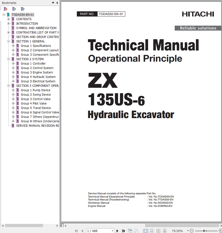 The Bookmarks of Hitachi ZX135US-6 Hydraulic Excavator Technical Manual: