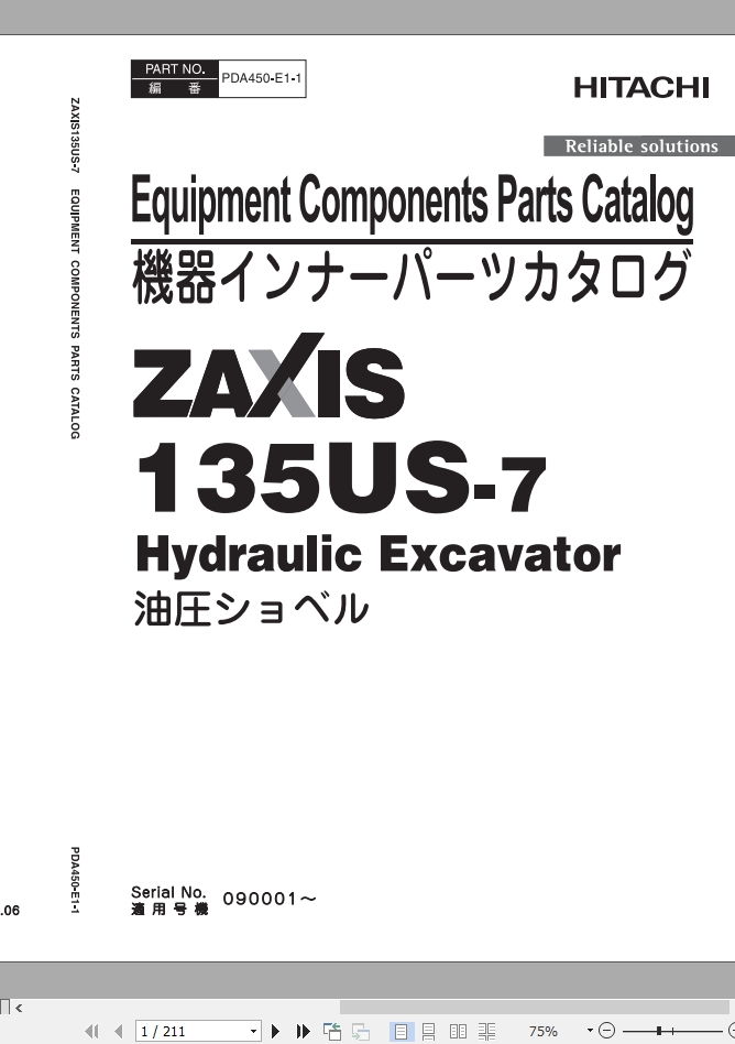 Hitachi ZX135US-7 Parts Catalog PDA450-E1-1
