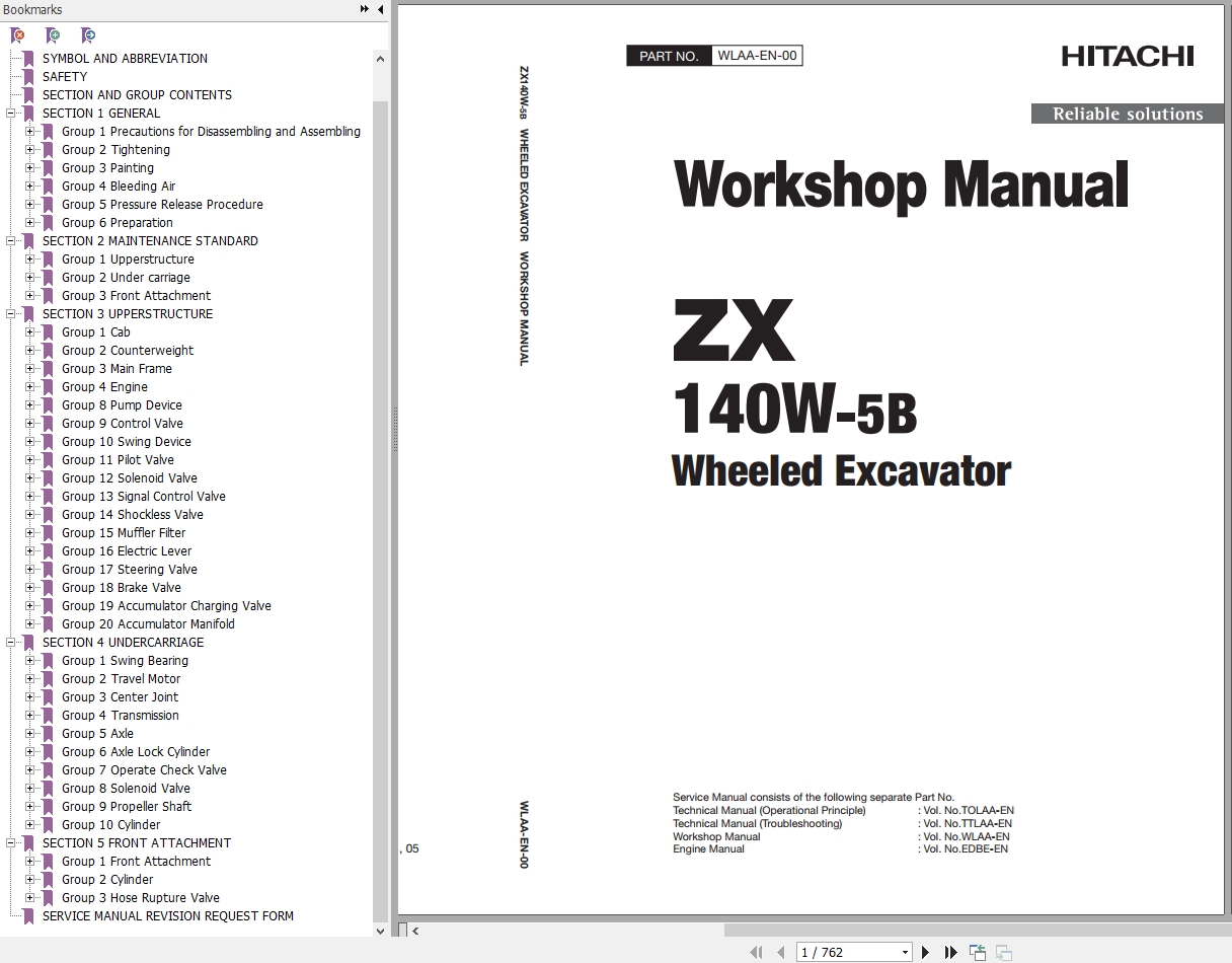 The Bookmarks of Hitachi ZX140W-5B Hydraulic Excavator Workshop Manual: