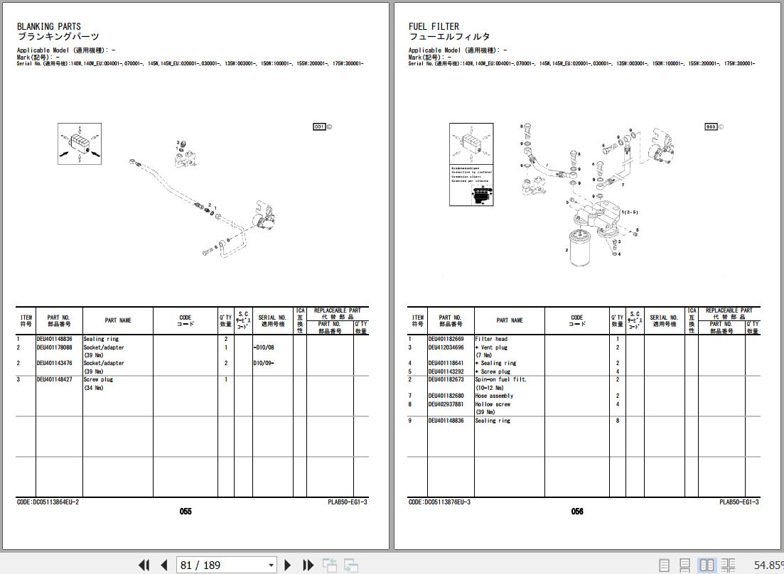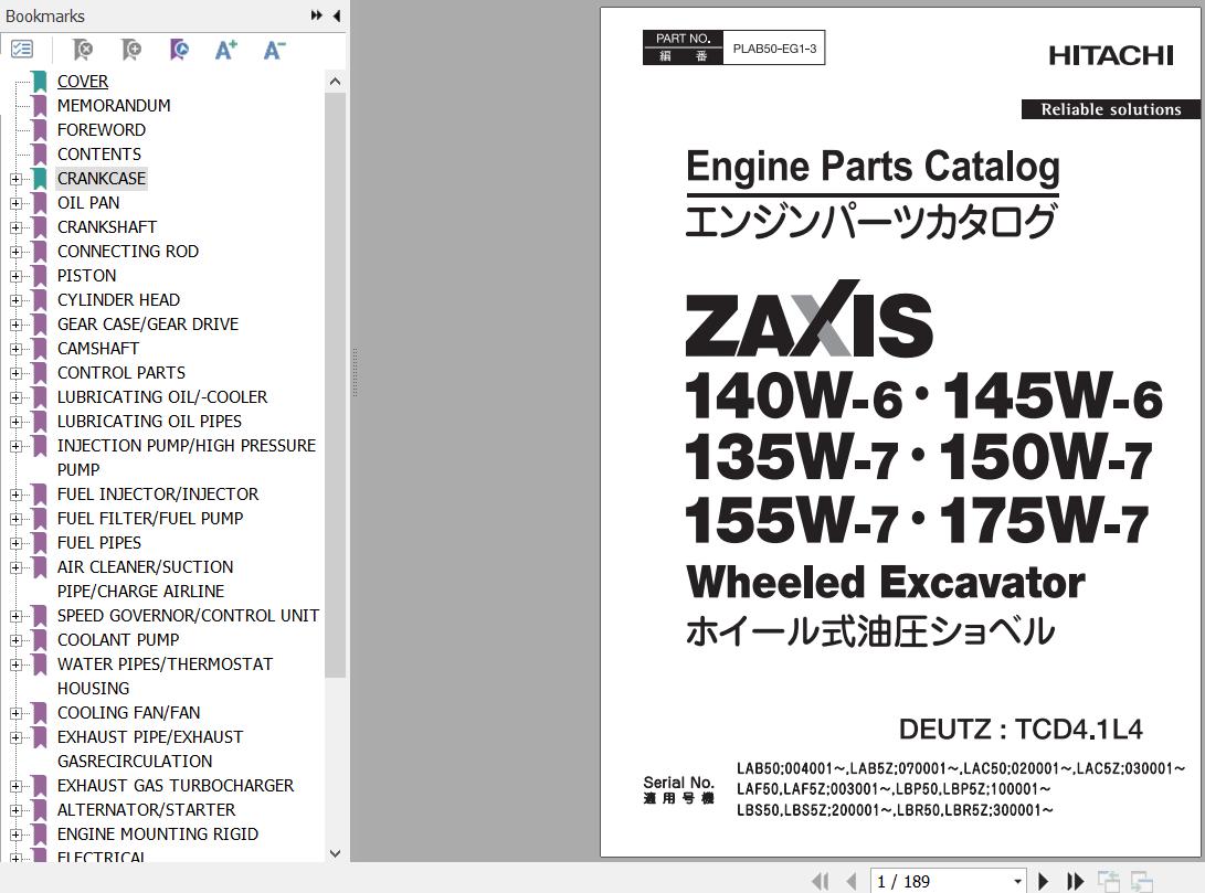 Hitachi ZX140W-6 to ZX150W-7 Deutz TCD4.1L4 Engine Parts Catalog PLAB50-EG1-3