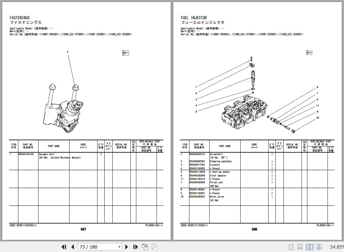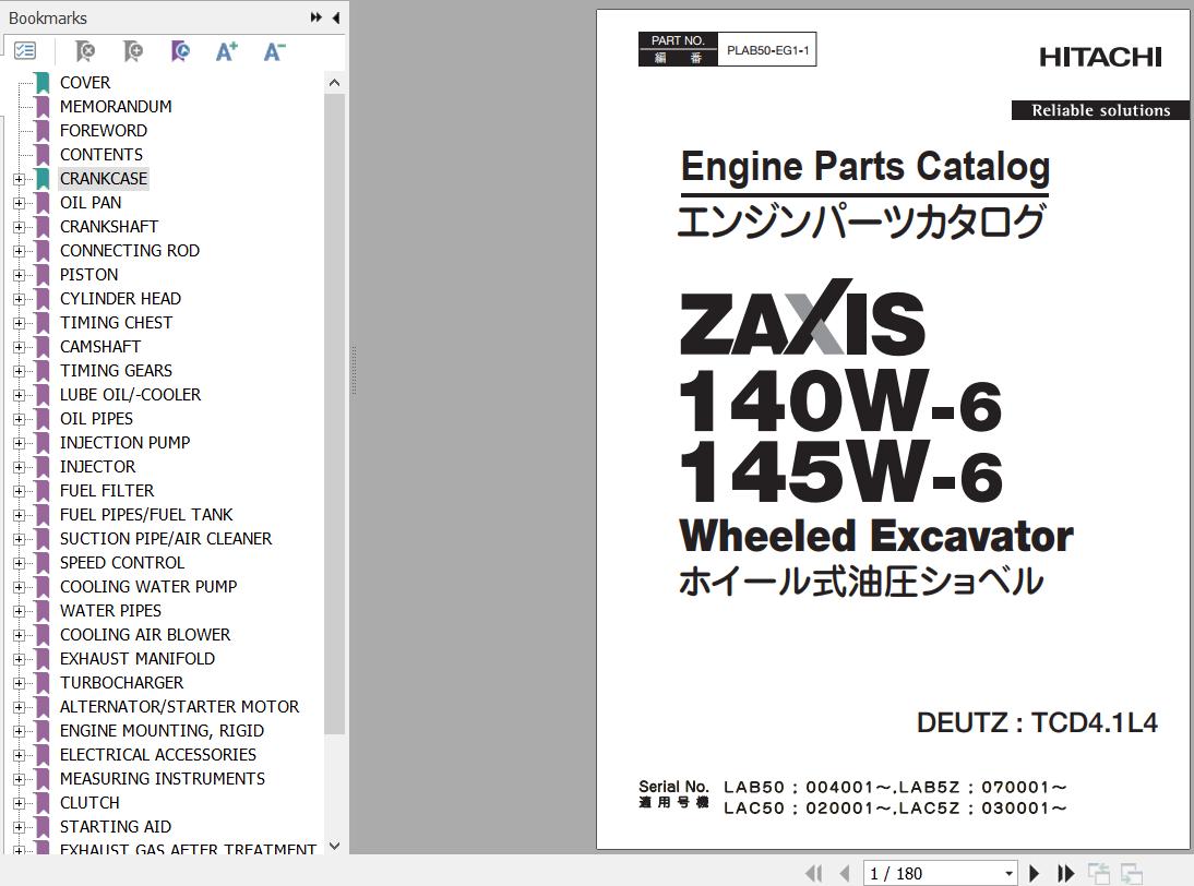 Hitachi ZX140W-6 ZX145W-6 Deutz TCD4.1L4 Engine Parts Catalog PLAB50-EG1-1
