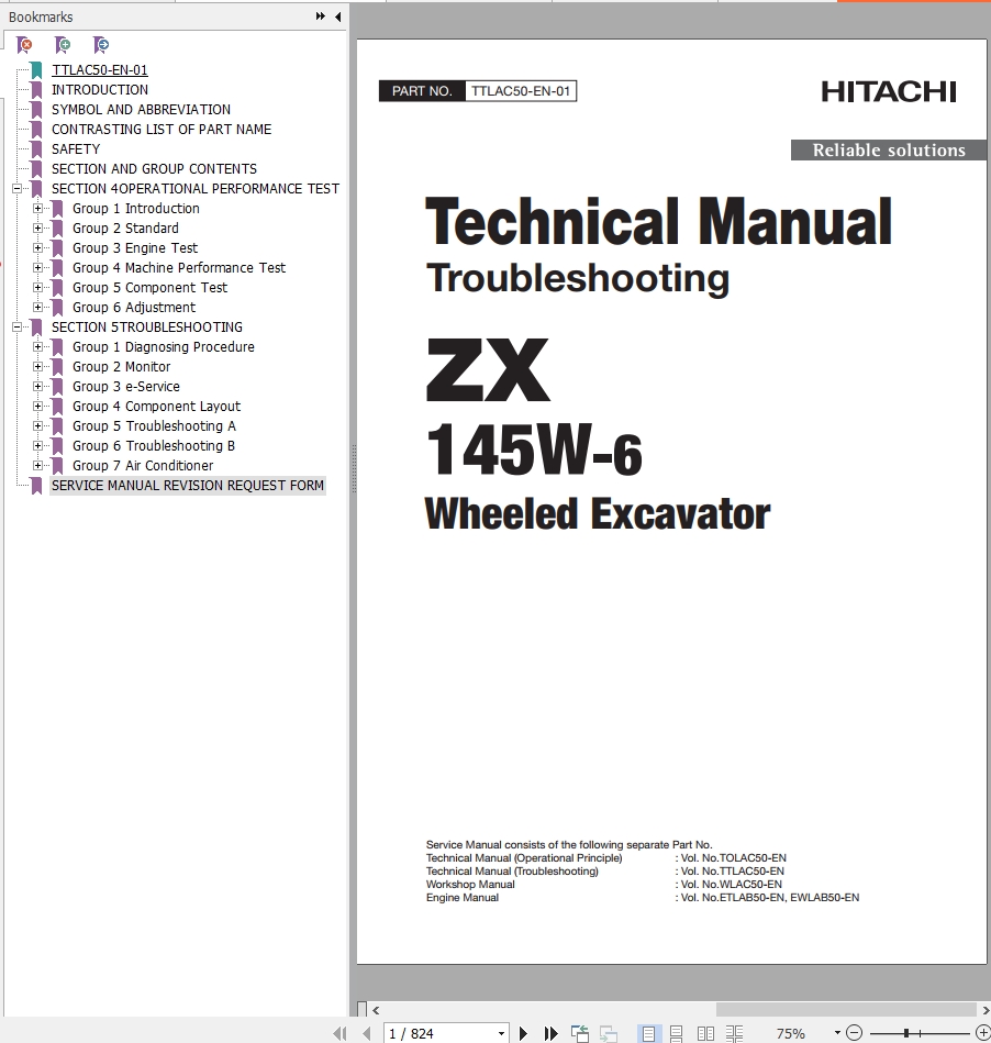 Hitachi ZX145W-6 Technical Manual TTLAC50-EN-01